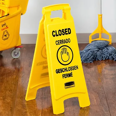– Nhà hàng và khách sạn: Cảnh báo khu vực bếp hoặc phòng đang tạm ngưng hoạt động để vệ sinh.