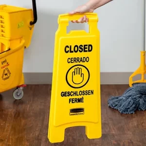Biển báo Rubbermaid bằng nhựa màu vàng Closed cho khu vực công cộng – FG611278 là giải pháp tối ưu để cảnh báo và bảo vệ khách hàng tại các khu vực tạm thời không hoạt động. Sản phẩm có thiết kế chữ A dễ dàng gập gọn, phù hợp sử dụng tại các khu vực có mật độ lưu thông cao như nhà hàng, khách sạn, trường học và trung tâm thương mại. Với màu sắc nổi bật và chất liệu bền bỉ, biển cảnh báo giúp đảm bảo an toàn và tiện lợi khi sử dụng.