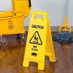 Biển báo “Cảnh báo sàn ướt” của Rubbermaid Commercial là biển báo nhẹ, giúp truyền đạt thông tin an toàn hiệu quả. Đây là biển báo sàn chất lượng cao, hai mặt, in thông điệp cảnh báo “Cảnh báo sàn ướt” bằng tiếng Anh. Biển báo có thể gập lại để cất giữ và vận chuyển thuận tiện trên xe đẩy vệ sinh hoặc xe đẩy vành, đồng thời sử dụng màu sắc và đồ họa tuân thủ tiêu chuẩn ANSI/OSHA.