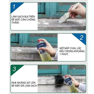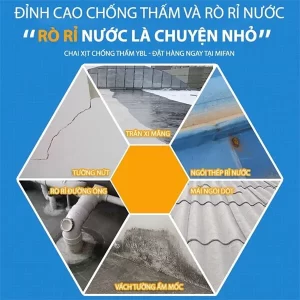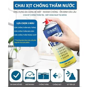 Bình xịt chống thấm chống dột đa năng. Gắn các lỗ thủng, lỗ hổng, vết nứt to và nhỏ của trần nhà: Trần mái tôn, vết nứt của tường gạch, trần bê tông,…