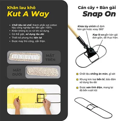 – Cán lau làm từ gỗ tự nhiên (hoặc nhôm, cán gỗ phủ Vinyl tùy chọn), dễ dàng vệ sinh và giữ vệ sinh.