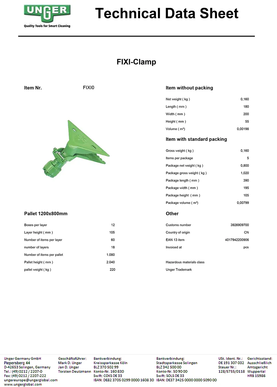 | Tên SP | Đầu kẹp khăn lau dùng vệ sinh trên cao UNGER FIXI0 |