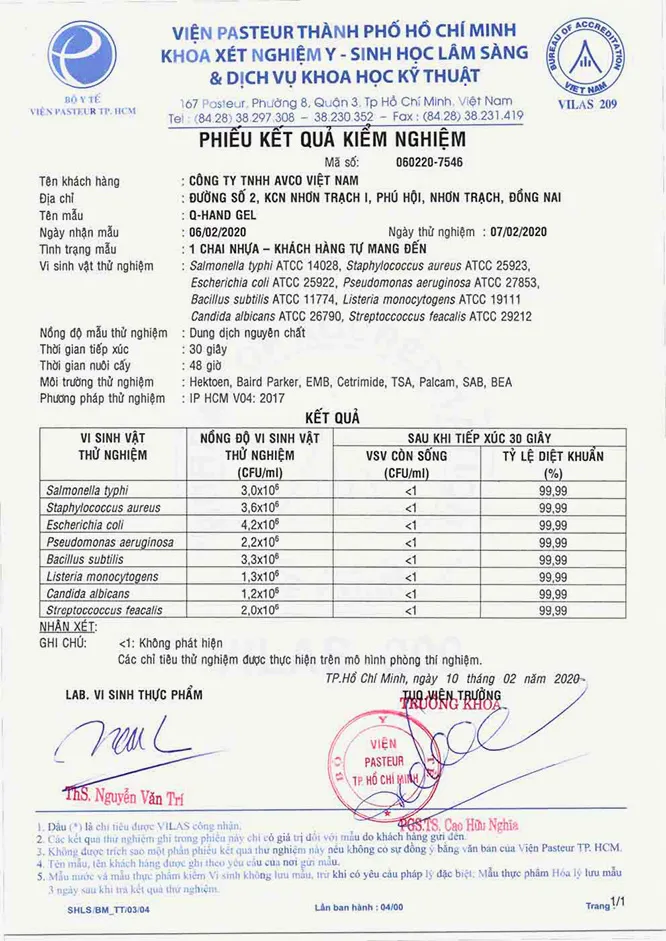 – Gel rửa tay khô AVCO Q-Hand Gel – Can 20 lít Sử dụng cực an toàn được chứng nhận bởi viện Pasteur