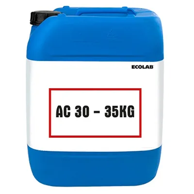 Chất tẩy rửa cáu cặn Ecolab AC30 can 35Kg là hóa chất chuyên dụng, dùng để tẩy rửa, vệ sinh cáu cặn canxi, gỉ sét, bùn đất, rong rêu và chất bẩn… hình thành trên các bề mặt trao đổi nhiệt.