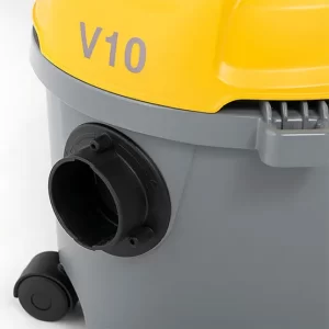 Máy hút bụi chuyên nghiệp nhỏ V 10 là sự kết hợp tuyệt vời giữa sức mạnh và khả năng cơ động, độ bền và trọng lượng nhẹ khiến cho thiết bị này có tính cạnh tranh cao. Khả năng quản lý tốt được đảm bảo bởi các bánh xe xoay phía trước và bánh xe cố định phía sau có đường kính lớn. Tay cầm tiện dụng, hệ thống giữ cáp và phụ kiện để đảm bảo dễ sử dụng tối đa. Thích hợp để đáp ứng nhu cầu vệ sinh ở những khu vực vừa và nhỏ như khách sạn, văn phòng, cửa hàng và môi trường gia đình nhờ động cơ 700 W chuyên nghiệp, tính thực tế và kích thước nhỏ. Cáp nguồn tiêu chuẩn (10 m).