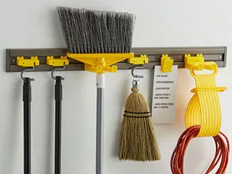 Móc treo dụng cụ vệ sinh Rubbermaid FG199200GRAY là lựa chọn lý tưởng để tổ chức và lưu trữ các dụng cụ vệ sinh một cách gọn gàng và hiệu quả. Với thiết kế dài 46 cm, sản phẩm này có thể lắp đặt dễ dàng trên tường và chứa đựng nhiều loại dụng cụ khác nhau như chổi, cây lau sàn một cách chắc chắn. Sản xuất bằng chất liệu nhựa cao cấp, móc treo Rubbermaid không chỉ bền bỉ mà còn đảm bảo tính thẩm mỹ cho không gian làm việc của bạn.