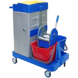 Xe đẩy vệ sinh KLEANWAY bao gồm nhiều loại xe đẩy, kèm theo xô lau nhà. Khung xe được phủ lớp chống hóa chất giúp kéo dài tuổi thọ sản phẩm, trong khi đế xe được làm từ nhựa polypropylene nguyên sinh giúp nâng đỡ chắc chắn cho thiết bị.