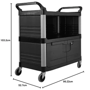 – Nhà hàng, khách sạn: Xe đẩy phục vụ 2 tầng có vách kín và tủ giúp vận chuyển thực phẩm, đồ dùng bếp hoặc dọn bàn.