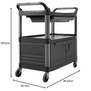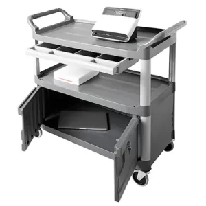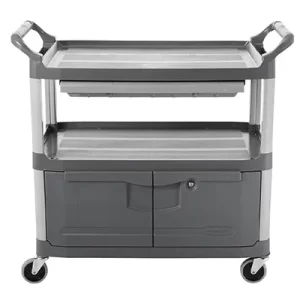 Xe đẩy phục vụ 2 tầng có ngăn kéo và tủ màu xám với thiết kế tích hợp ngăn kéo trượt và tủ khóa là lựa chọn hoàn hảo để hỗ trợ lưu trữ và vận chuyển dụng cụ tại các môi trường chuyên nghiệp như nhà hàng, khách sạn, văn phòng và trung tâm thương mại. Xe đẩy dịch vụnày của Rubbermaidmang lại sự tiện lợi, bền bỉ và hiệu quả vượt trội, phù hợp cho cả không gian tiền sảnh và hậu sảnh.