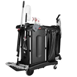 – Đựng và vận chuyển dụng cụ vệ sinh: Xe làm vệ sinh PA có nắp kín dòng Executive giúp sắp xếp các công cụ cần thiết khi làm vệ sinh như chổi, cây lau nhà và hóa chất lau chùi.