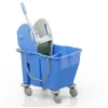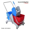 Xe đẩy lau nhà Kleanway Mini 15L có 4 bánh xe Ø80mm có thanh chắn, khay đựng, túi đựng rác màu vàng có khung giữ và đế đỡ, kèm theo máy vắt lau nhà.